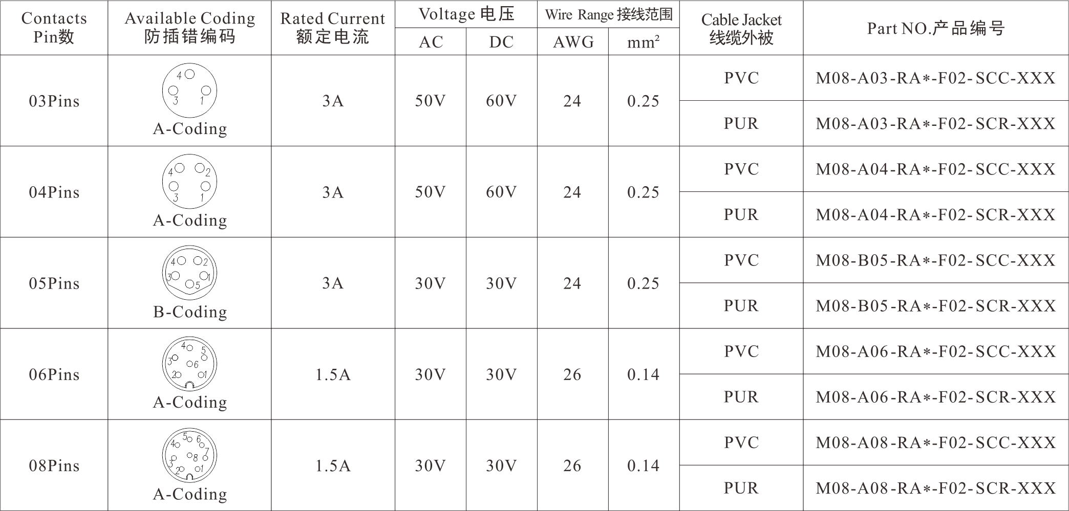 Part No 产品编码:M08-X**-RA0-F02-SC*-XXX