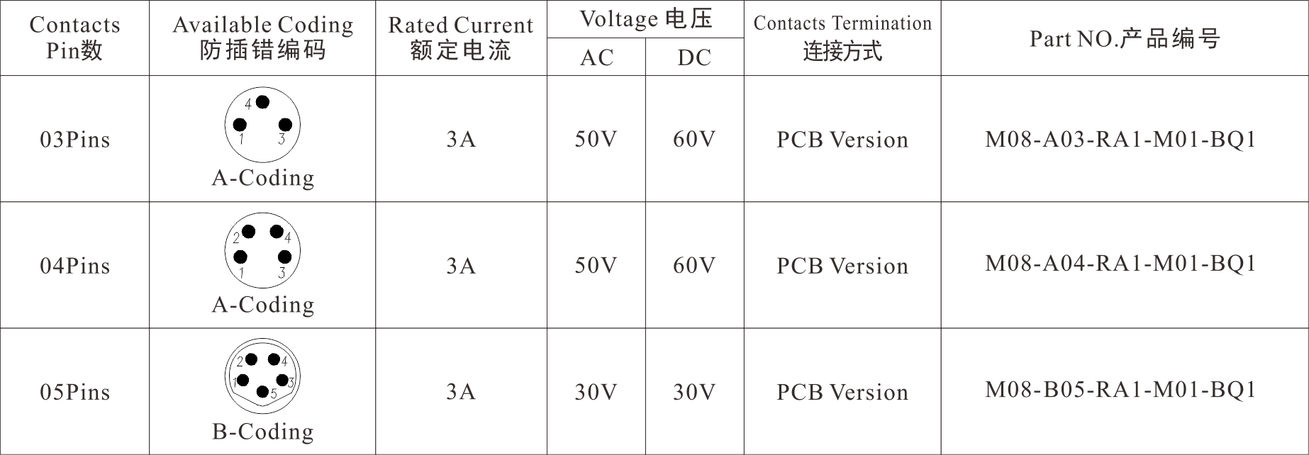 Part No 产品编码:M08-X**-RA1-M01-BQ1