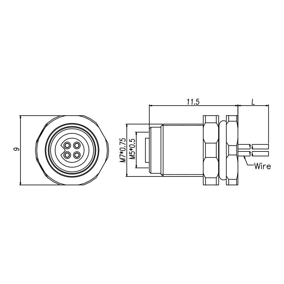 M5 母头面板式,焊接型,前锁安装,焊电子线