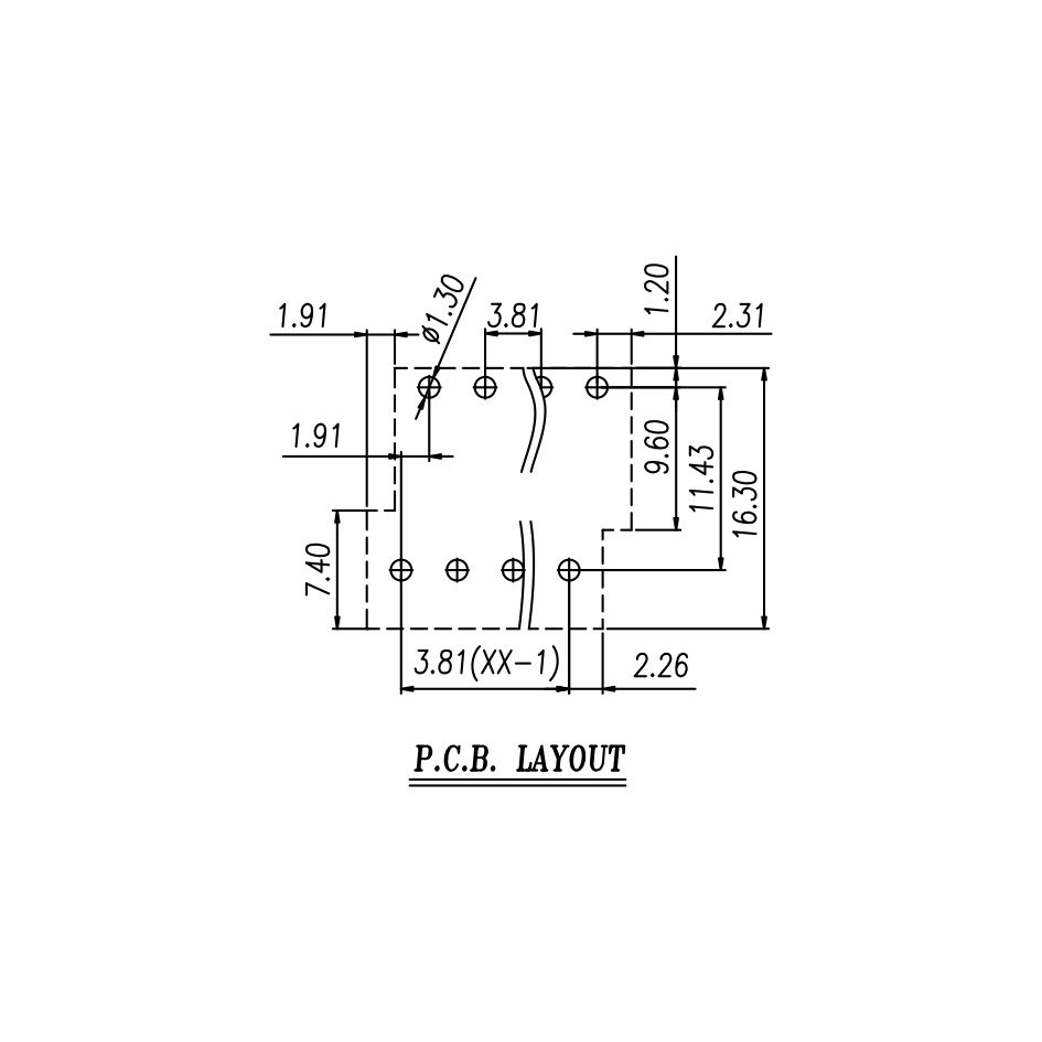 PCB板孔径 PCB Hole Diameter [mm]Ø1.3
